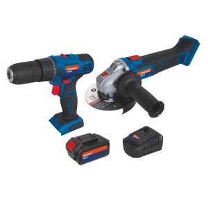 Aku-odvijač : maks.30Nm obrtni moment ,broj obrtaja na prazno : 0-3500/1300/min. Aku-brusilica : presjek ploče 125mm uključuje Li-ionski aku 18V/4,0Ah i brzi punjač
