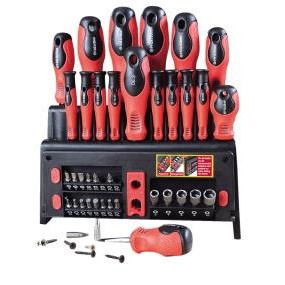 oštrice od krom-vanadij-čelika, vrhovi magnetizirani, praktična drškasastoji se od: 3 plosnata odvijača: 4×75, 5,5×100, 6,5×125 3x PH: PHx60, PH1x75, PH2x100